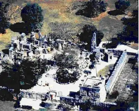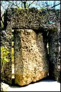На окруженную стенами территорию можно попасть через гигантскую дверь. Эта входная дверь сделана из одной плоской каменной глыбы весом 9 тонн, которая установлена на железном стержне, проходящем через просверленную по оси камня дыру и опирающемся на подшипники сверху и снизу, так что она действует как вертушка. В сплошном камне Эд каким-то образом сумел просверлить почти идеально круглую дыру длиной 3 метра и диаметром около 5 см. Сейчас такую работу можно сделать только лазером. Эта дверь настолько хорошо сбалансирована, что для того, чтобы ее повернуть достаточно просто слегка нажать на ее край, даже у маленькой девочки хватит сил, чтобы ее повернуть. И это — девятитонную глыбу!
