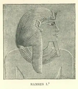 Рамсес I - основатель династии рамсессидов, дед Рамсеса Великого. Его официальными статусами до египетского престола были: Командующий Крепости, Посланник фараона в Каждой Иностранной Земле, Королевский Писц, Воевода Бога Двух Земель. Рамсес I, который был известен до своего царствования как Парамесу (Paramessu), служил фараону Хоремхебу, своему предшественнику. Рамсес I и Хоремхеб восстановили общественный и экономический порядок в стране, разорванной на части из-за религиозных реформ Эхнатона.
