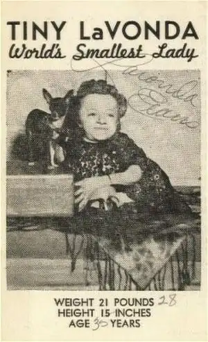 Ла вонда Стапп ( LaVonda Stapp) родилась 3 января 1920. Она была младшей из дочерей Карла и Эллы Ферн Стапп. С детства она страдала врождённым заболеванием osteogenesis imperfecta, при котором кости человека отличаются повышенной хрупкостью… Её рост не превышал 110 сантиметров, хотя данные эти не совсем точные, ведь рост «Малышки ЛаВонды», как её называли, измерялся в сидячем положении – стоять она не могла…