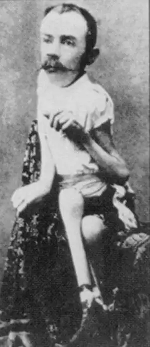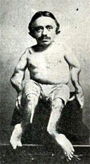 Джордж Вильямс Родился в 1859 году в Хот-Спрингсе в Арканзасе. Вильямса называли "мальчик- черепаха". Ростом всего около метра и размером головы как у ребёнка приблизительно 12 лет, Джордж не имел костей в ногах от колена. А сами они были искривлены настолько, что он никогда не вставал…