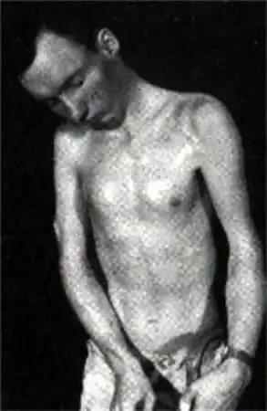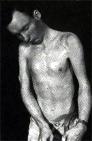 Гарри Раймонд Истлак родился в 1930. Страдал от FOP. Болезнь превратила его буквально в «каменного человека»… Гарри было 10 лет, когда его тело начало закостеневать… Под конец жизни был в состоянии лишь пошевелить губами...