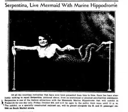 С конца30-ых годов Серпентина участвовала в «Морском шоу», где изображала русалку рядом с настоящими китами, акулами, и гигантским осьминогом…