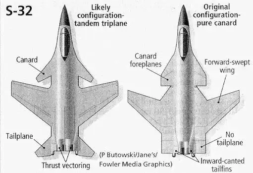 Пока проводилось внутреннее разбирательство, каким образом снимок попал на страницы журнала, Запад кропотливо работал над этой темой. В декабре 1997 г. английский авиационный еженедельник Flight International (11-17 декабря) опубликовал статью под названием “Сухой” выступает с проектом истребителя пятого поколения”, написанную совместно Александром Веловичем (бывшим начальником бригады в ОКБ Микояна) и Дугласом Барри. Английские специалисты сумели так обработать эту фотографию, что почти незаметная моделька стала различимой до мельчайших подробностей, благодаря чему удалось подготовить первые рисунки нового российского истребителя. В конце года в журналах Flight и Jane’s Defence Weekly были опубликованы рисунки самолета С-32.