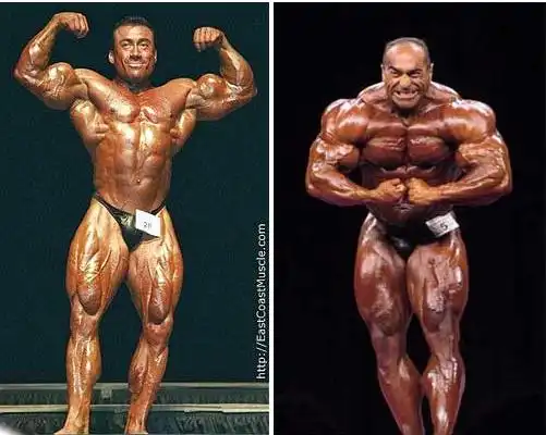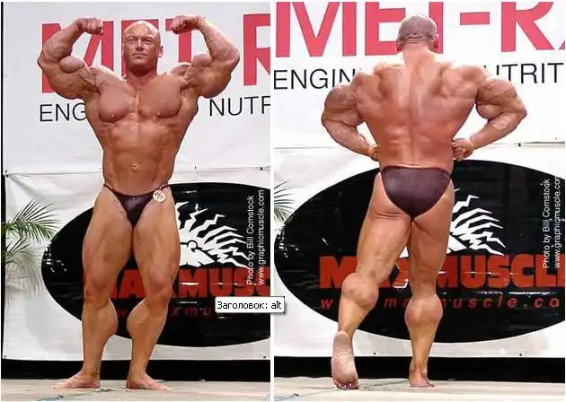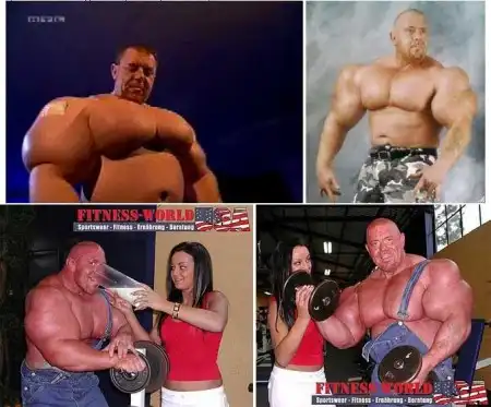 ...обладает крайне низкой анаболической активностью, но при внутримышечных инъекциях обладает свойством вызывать сильную воспалительную реакцию, следствием которой является отёк и соответственно кратковременное (около 24 часов) увеличение объёма мышцы. Эти свойства и обусловили широкое использование эсиклена соревнующимися бодибилдерами. И одновременно натолкнули немецкого химика-любителя Криса Кларка на мысль о том, что неплохо бы создать аналогичный препарат длительного действия. Полученный в начале 90-х состав он Синтол (synthol) - подобно названию одной из самых мощных технологий ядерного синтеза. Однако это название оказалось уже запатентованным, поэтому было придумано новое - "Pump'N'Pose" (Качайся и Позируй). Под этой маркой препарат сейчас продаётся по всему миру. Одним из первых пользователей синтола был немецкий strongman Klaus Doring, называющий себя "обладателем самых больших рук в мире" размером в 27 дюймов (этого умолишённого вы ещё увидете). В конце статьи в кунсткамере и вы поймёте, что сейчас в этом нет ничего необычного. Пару дюймов с помощью синтола - обычное дело. Да и колят его теперь не только в бицепс и трицепс, но также в игроножные, квадрицепсы, дельтовидные и грудные мышцы.