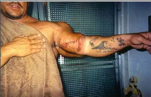 Gregg Valentino - самый известный синтольщик в мире, и по совместительству обладатель "самых больших рук в бодбилдинге". По мне так так это баллоны с дерьмом вместо рук. Кстати сказать, что стало с его рукой вы уже могли видеть... легко отделался.