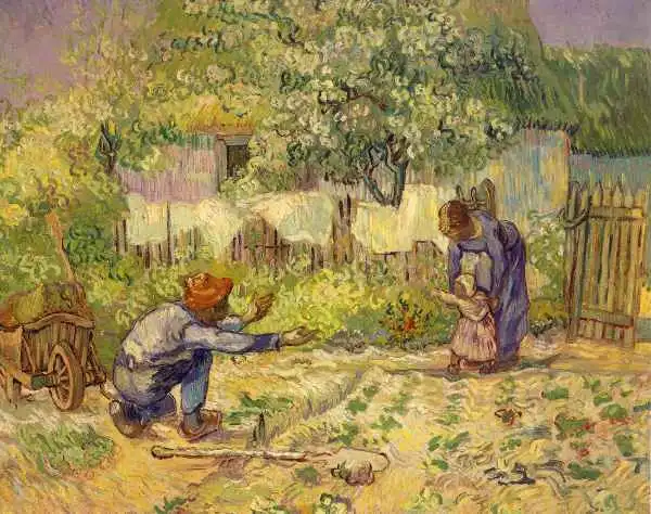 Впоследствии у них родились еще дети : сын и три дочери. Все мужчины в роду Ван Гогов традиционно были либо священниками , либо торговцами картинами( помимо отца Винсента в церкви служили и некоторые его родственники). Поэтому было вполне естественно , что в 1869 году, не успев закончить школу, Винсент оказался служащим гаагской фирмы «Гупиль и Ко», торговавшей картинами, совладельцем которой был его дядя. Способностей в торговле у Винсента не оказалось, но зато у него были достоинства, с лихвой искупавший этот недостаток: любовь к живописи, интеллигентность и умение распологать к себе. В результате ему удалось добиться заметных успехов в работе. Помимо этого у Винсента были хорошие способности к языкам, и в июне 1873 года, когда ему исполнилось 20 лет, он был направлен на работу в Лондонское отделение фирмы. Здесь он провел следующие два года, ставшие поворотными во всей его судьбе. Первое время Винсент жил в Лондоне легко и беззаботно, наслаждаясь всем, что может предоставить молодому человеку огромный столичный город, и посещая отнюдь не только музеи и картинные галереи. У него было скромное но вполне приличное жалование и оказались все предпосылки к тому, чтобы со временем стать преуспевающим торговцем. Он даже купил себе цилиндр, обойтись без которого, как он писал в одном из писем домой, «в Лондоне совершенно не возможно». Однако такая идиллия очень скоро закончилась, и случилось это, когда Винсент до безпамятства влюбился в дочь своей квартирной хозяйки. Известие о том , что девушка уже обручена с другим, стало для него тяжелым ударом. Боль, испытанная Винсентом, после того как ему отказали, буквально переменила его; он сделался молчаливым и замкнутым. Именно тогда было положено начало горьким неудачам в отношениях с женщинами , которые преследовали художника на протяжении всей его жизни. В 1875 году Ван Гога ненадолго переводят в парижское отделение фирмы, затем он на какое-то время возвращается в Лондон и , наконец, вновь приезжает в Париж. Но перемены происшедшие в характере Винсента, оказались необратимыми. Он стал безразличен к своей работе, и это не могли не заметить работодатели. В итоге вскоре после возвращения в Париж он был уволен. За годы, проведенные им в Лондоне и Париже, Винсент начал находить все большее утешение в религии. Им овладело страстное желание помогать всем обездоленным и несчастным, ведь жизнь в больших городах, и прежде всего в Лондоне, открыло ему глаза на ужасное положение бедняков. В 1876 году он возвращается а Англию,где преподает в школе сначала в Рамсгейте , на юго-восточном побережье, а затем в Айлуорте, неподалеку от Лондона. В начале 1877 года , вернувшись в Голландию и проработав несколько месяцев клерком в книготорговой компании в Дордрехте, он переезжает в Амстердам и начинает учиться на священника . Суровая обстановка богословского факультета была не по душе Винсенту, он бросает учебу и в июле 1878 года возвращается в родительский дом. В марте 1886 года Ван Гог приезжает в Париж, чтобы поселиться в квартире своего брата Тео, которую тот снимал на Рю Лепик. Некоторое время он берет уроки у Фернана Кормона , в мастерской которого встречается с Анри Тулуз-Лотреком. Здесь же он сводит знакомство с некоторыми другими художниками, наиболее известными из которых были Гоген и Писсарро. В Париже Ван Гог быстро про