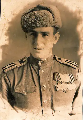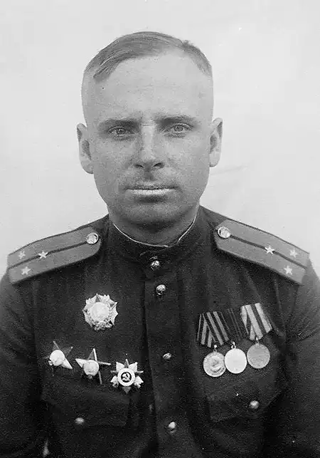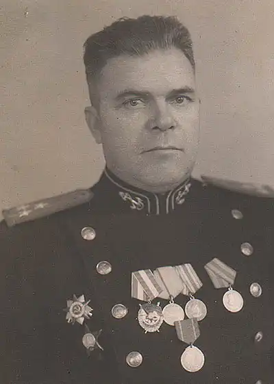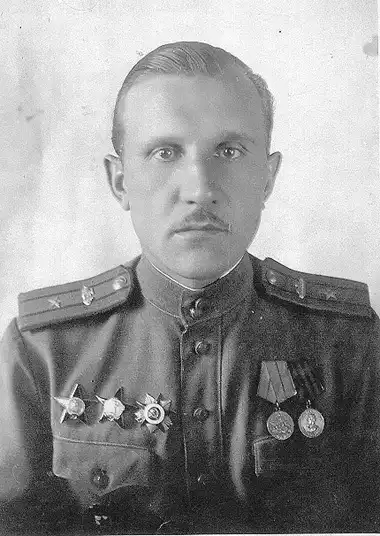 Полковник артиллерии Сорин Завель Абрамович. Награжден орденом Богдана Хмельницкого 3-й степени, орденом Александра Невского, двумя орденами Отечественной войны (один из них - на прямоугольной подвесной колодке), двумя орденами Красной Звезды и медалями.