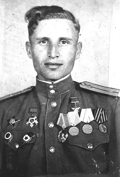 Герой Советского Союза. Награжден орденом Ленина, орденом Отечественной войны I степени, орденом Красной Звезды, медалями "За боевые заслуги", "За оборону Сталинграда" и "За победу над Германией".