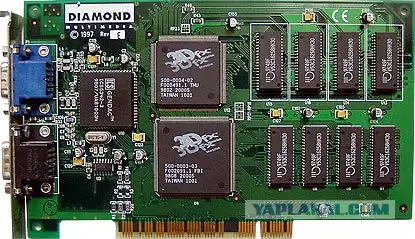 1997 год, модель 3dfx Voodoo Rush, частота процессора: 50 МГц, частота памяти: 50 МГц, DirectX 5, PCI/AGP: