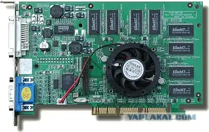 2000 год, модель NVIDIA GeForce 2 GTS, частота процессора: 200 МГц, частота памяти: 333 МГц, DirectX 7, AGP: