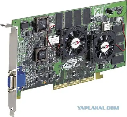 1999 год, модель ATI Rage Fury MAXX, частота процессора: 125 МГц, частота памяти: 143 МГц, DirectX 7, AGP: