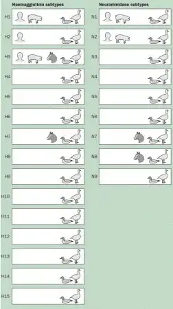 Изначально грипп – инфекция птичья. Известны 15 вариантов гемагглютинина (H1-15) и 9 вариантов нейраминидазы (N1-9), которые регулярно циркулируют у пернатых. Различные комбинации этих антигенов создают разнообразные подтипы вирусов гриппа А. У людей циркулируют в основном комбинации из Н1-3 и N1-2. Пандемии с большим количеством жертв приключаются, когда появляются новые гибриды птичьих подтипов с человеческими. Напрямую так гибридизироваться, как правило, не выходит, и тут промежуточным звеном становятся свиньи. Свиньи болеют своими поросячьими подтипами H1,3 и N1-2, и люди заболевают ими очень редко (разве что иммунодефицитные фермеры). Но зато свинки служат отличным полигоном для гибридизации человеческих и птичьих гриппов со своими. С очередным таким гибридом мы сейчас и столкнулись.