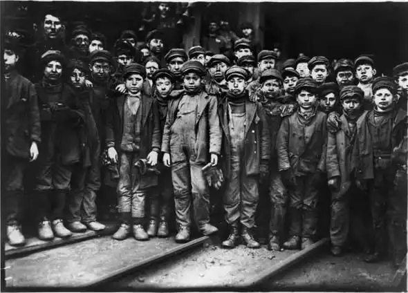 Фотография мальчиков-шахтёров, которые работали на одном из месторождений в Америке в 1910 году, добывая уголь. Вскоре после того, как фотография стала доступна широкой общественности, детский труд в Америке отменили.