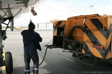 Итак самолет прилетает в аэропорт назначения. Сразу же по встрече подъезжает машина обслуживания туалетов с большим гофрированным шлангом.