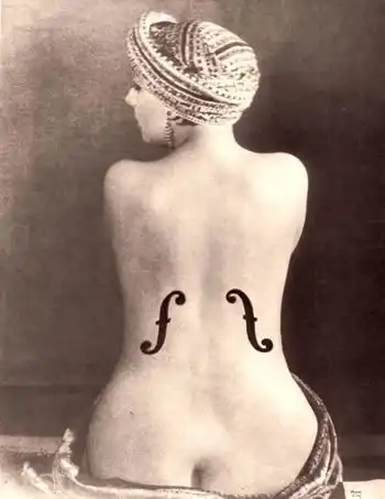 До того как наступила эпоха цифровой фотографии и фотошопа (Photoshop), была эпоха Мэн Рея. Один из самых известных и самобытных фотографов мира без устали экспериментировал с фотоизображениями. Фотография "Le Violon d'Ingres" является его ранней и, вероятно, самой известной работой. Она представляет собой своеобразный визуальный каламбур, одновременно подчеркивая сходство женского тела с корпусом скрипки и отсылая зрителей к ассоциации с французским художником Jean-Auguste-Dominiqe Ingres, который рисовал обнаженных женщин и сопровождал показ своих картин игрой на скрипке. Работы интеллектуала-дадаиста Мэн Рея опередила свое время. Определив фотографию как средство для художественной интерпретации реальности, Мэн Рей предвосхитил нашу революцию в цифровой фотографии.