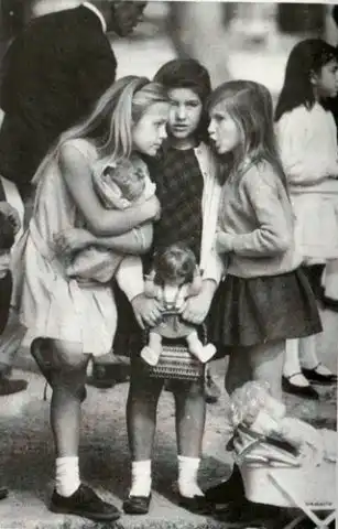 Три американские девочки сплетничают на одной из аллей Севиллы, Испания. На протяжении длительного времени почтовая открытка с этим изображением была самой популярной на территории США.