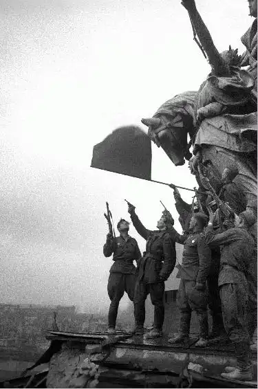 Солдаты, штурмовавшие рейхстаг. Берлин. Май 1945 год. Фото А.Капустянского.