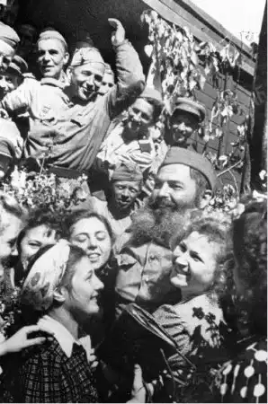 Вязьма. Встреча бойцов Красной Армии населением освобождённого города. 1943 год. Фото Н.Попова.