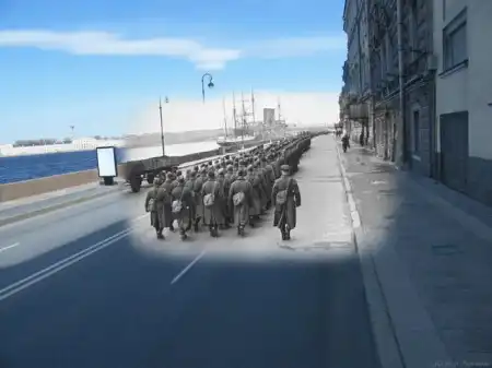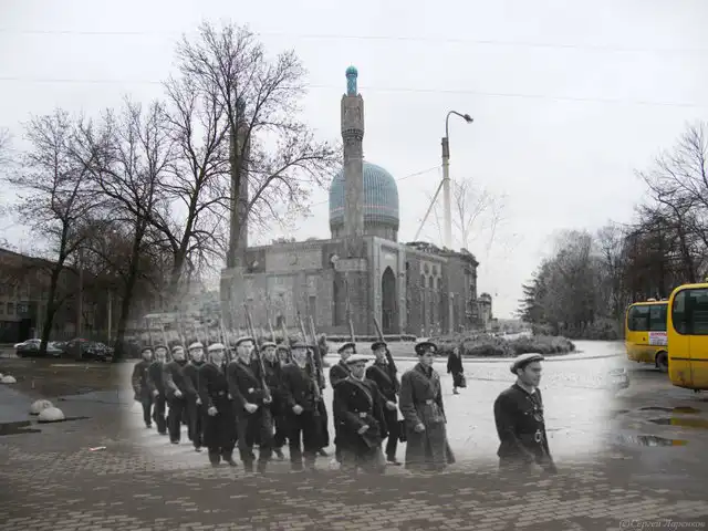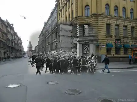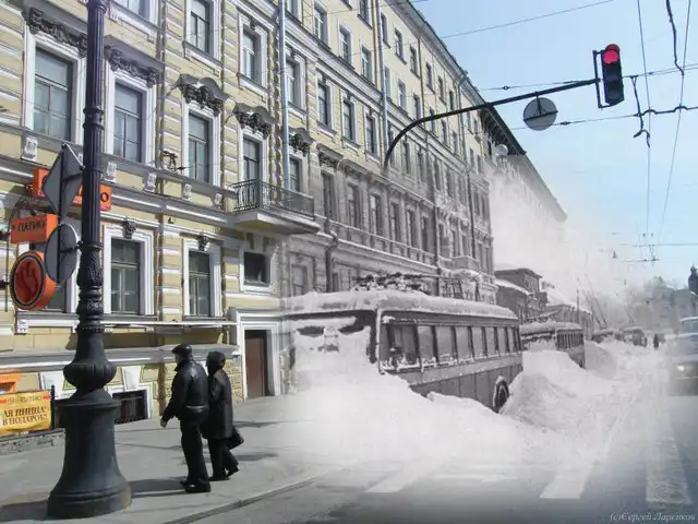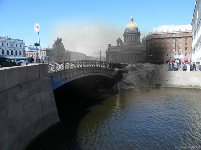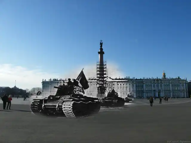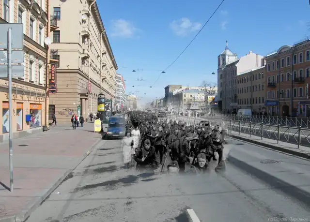 Хотелось найти сопоставление Санкт-Петербурга в годы ВОВ и сейчас, но нашел только такой коллаж. Но, думаю, получилось тоже довольно интересно. Спасибо автору: Сергей Ларенков