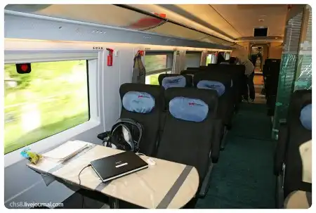 Пассажирам предлагается уровень комфорта, сопоставимый с самолетным – удобные сиденья, отличная звукоизоляция и великолепная плавность хода. Вагоны имеют двухклассную компоновку: головные – бизнес класс, промежуточные – туристический класс. Отличий по минимуму: в бизнес-классе черная обивка сидений, увеличенное расстояние для ног и есть розетка между сиденьями для использования ноутбука или подзарядки мобильного телефона.