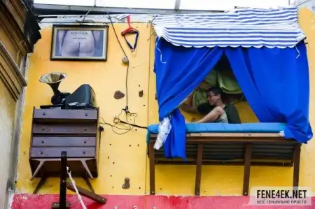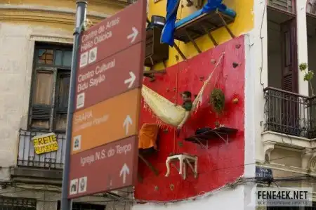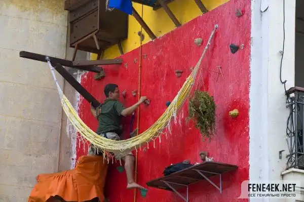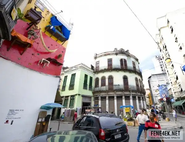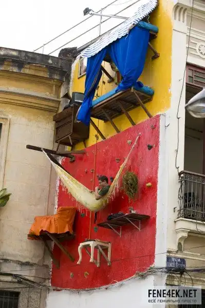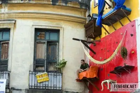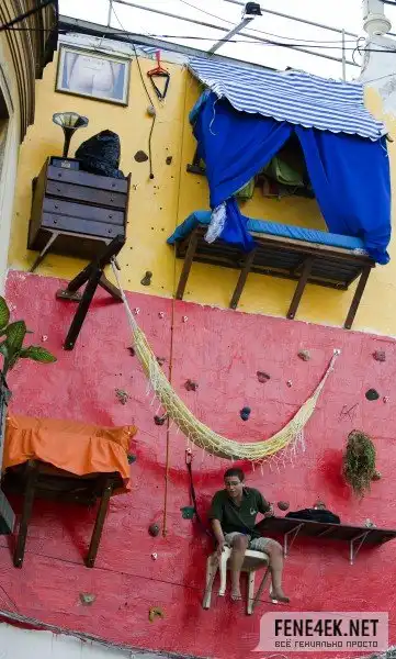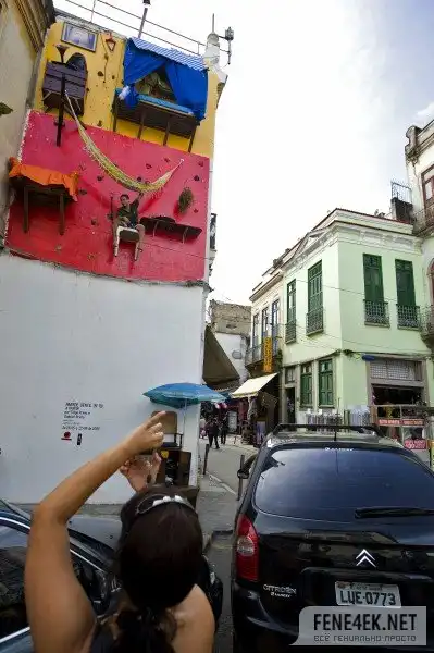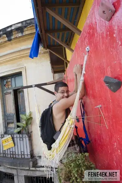 Чудак, бразильский актер Gabriel Primo, в прямом смысле этого слова, живет на стене одного из домов в Рио с 23 мая с.г.. Ну, людям делать нечего!