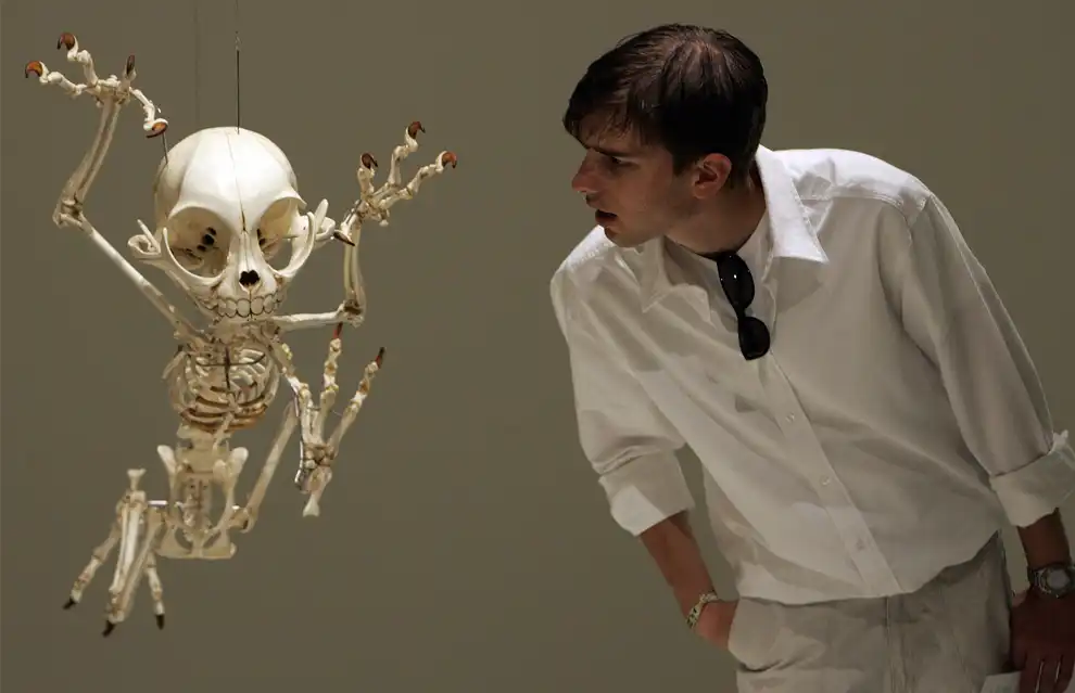 A visitor looks at a mock skeleton of the cartoon character Tom from "Tom and Jerry" by South Korea's artist Hyungkoo Lee during a special exhibition "Animatus" at Natural History Museum Basel, Switzerland on August 26, 2008. (REUTERS/Stefan Wermuth)