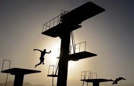 Afghan youths dive at a swimming pool on Wazir Akbar Khan hill in Kabul on June 24, 2008. Temperatures in the Afghan capital are approaching the 30 degrees Celsius mark as the summer sets in in Central Asia. (SHAH MARAI/AFP/Getty Images)