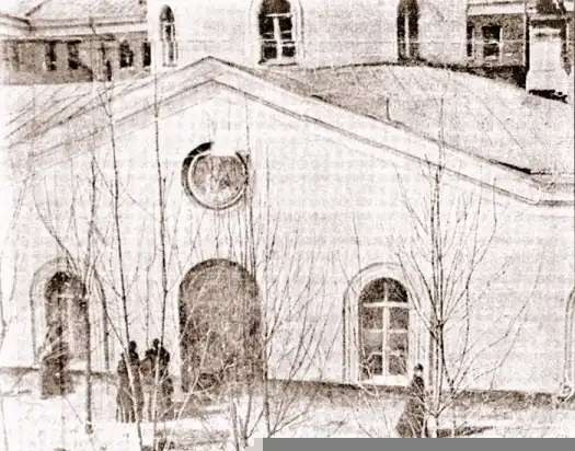 Арестованные курсистки перед бутырской тюремной церковью на прогулке. Фото 1905 г.