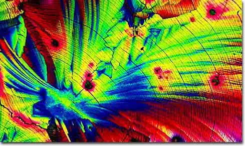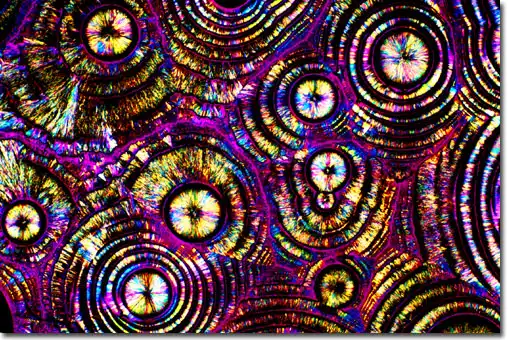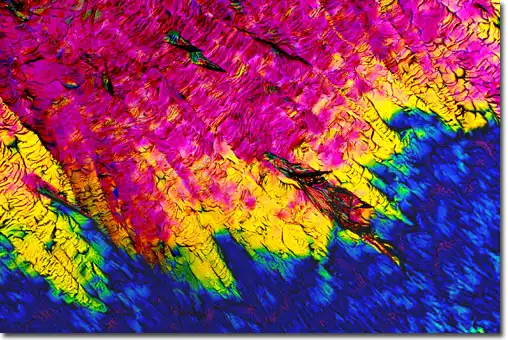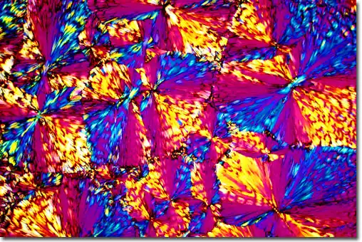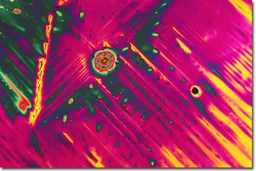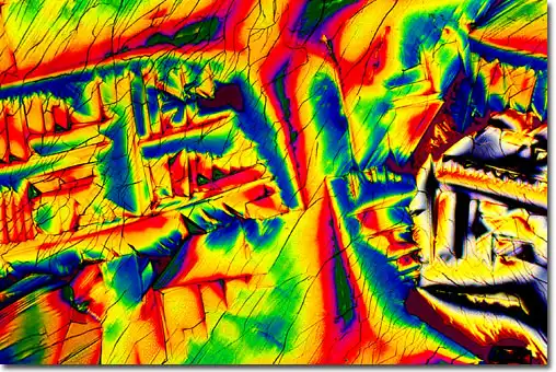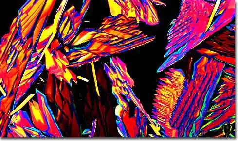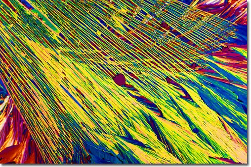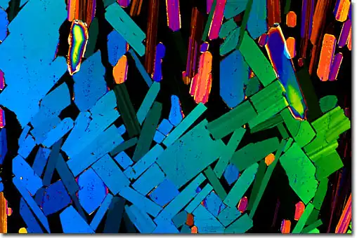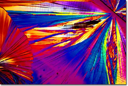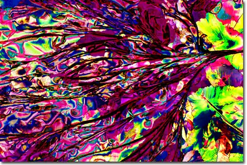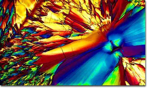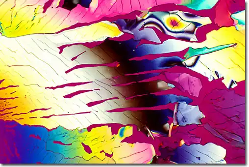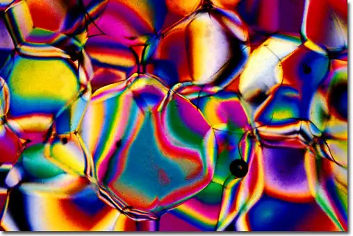 1. Поляризационная световая микроскопия, позволяющая фиксировать блестящие цветные образцы, которые возникают в результате двойного преломления замороженных составляющих материалов в пиве.
