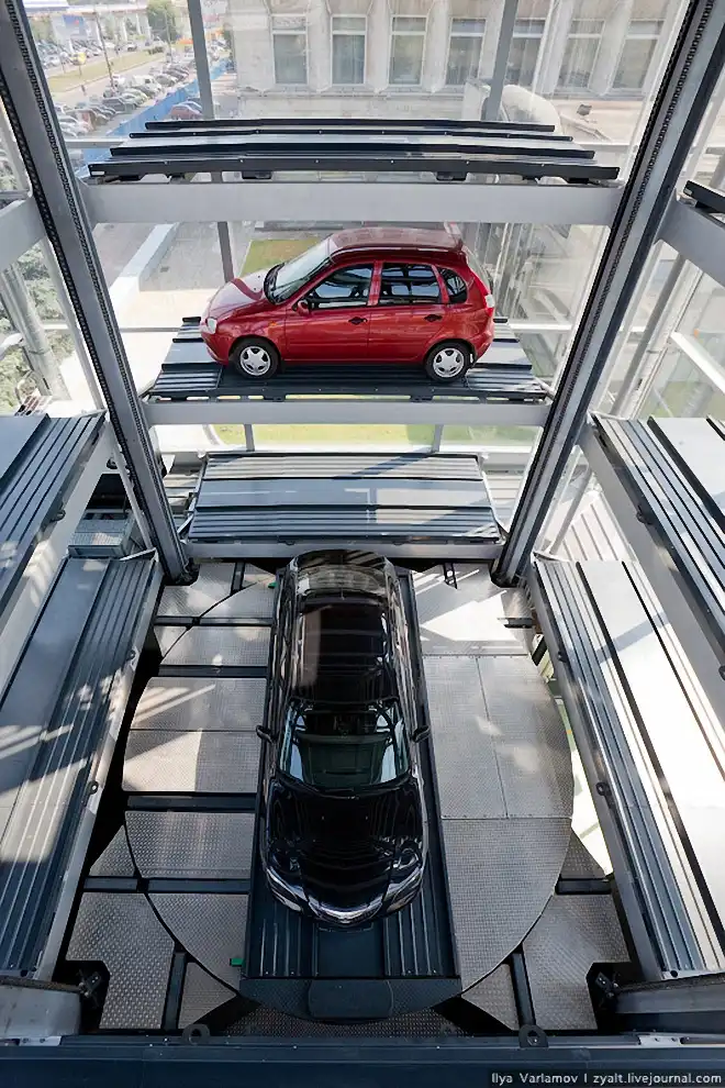 Одна из главных проблем в Москве у автолюбителей это где припарковаться, особенно в центре. В Европе в центре города достаточно платных паркингов, под это отводят целые здания. Один из вариантов решения это проблемы - постройка многоэтажных автоматизированных паркингов. Один такой паркинг уже установили в Москве на улице Академика Королева.