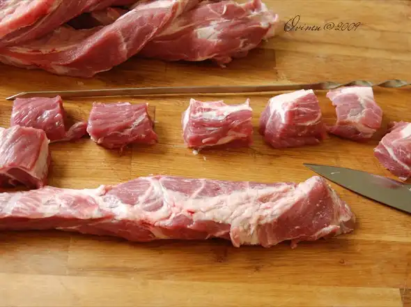 Старайтесь выбрать мясо с жировыми прослойками ( например свиной ошеек ), филе меньше всего подходит для шашлыка.