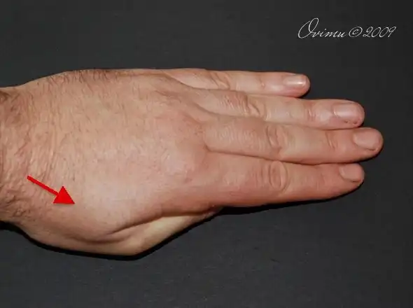 Надавив на область, которая указана стрелкой указательным пальцем другой руки мы получим по мягкости :
