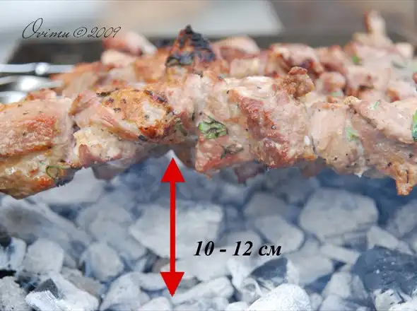 Аксиома . Мясо не готовится на открытом пламени, а готовится за счет инфракрасного излучения раскалённых углей . Языки пламени убивают мясо превращая его в обугливавшие куски органического вещества .