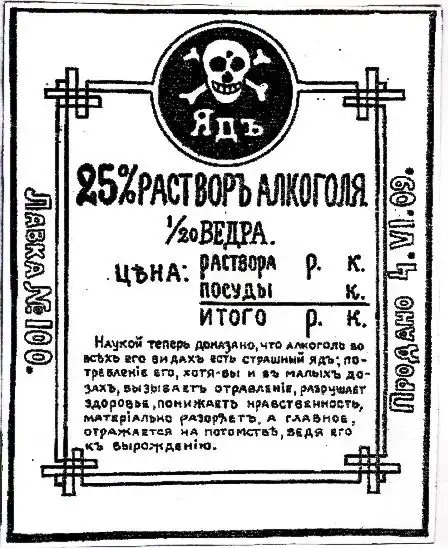 В этом году исполняется 100 лет ниже приведённой этикетке, которую наши ТРЕЗВЫЕ предки наклеивали на 25% водку. Оцените точность, краткость, современность и информативность как русского языка, так и наших предков, ещё не ушибленных повальной алкоголизацией страны.