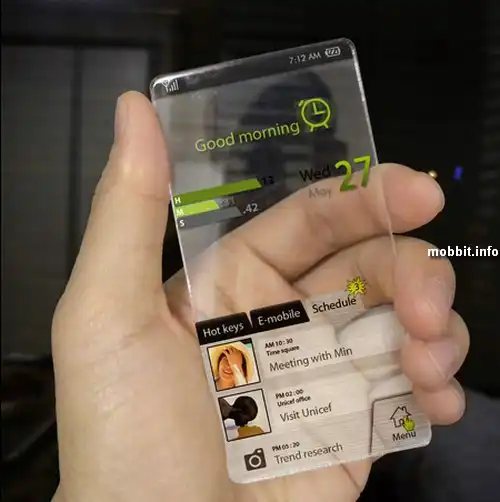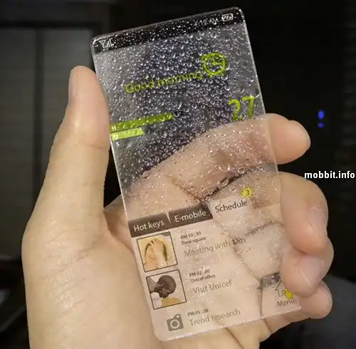 С одной стороны, прозрачные концептуальные телефоны уже были, так что этот точно не первый, но с другой, так называемый Window Phone имеет одну впечатляющую особенность – его прозрачный корпус меняется в зависимости от погоды! Таким образом, в солнечные дни экран будет полностью прозрачный, в дождливый день на нем будут появляться «виртуальные» капли, а в мороз он покроется изморозью. Т.е. прозрачный экран будет выглядеть примерно также, как настоящее окно в разную погоду. Не знаю, насколько это будет практично, но по крайней мере, очень оригинально! :)