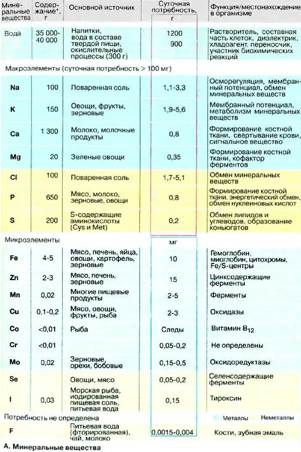 Минеральные материалы, так же как и другие материалы, входящие в состав нашего тела, непрерывно тратятся организмом, причем размеры этих трат зависят от ряда причин, как, например, от облика деятельности, договоров работы, состояния организма и т. п. Если питание человека всевозможно, то в нем в достаточном количестве содержатся в целом необходимые минеральные материалы.