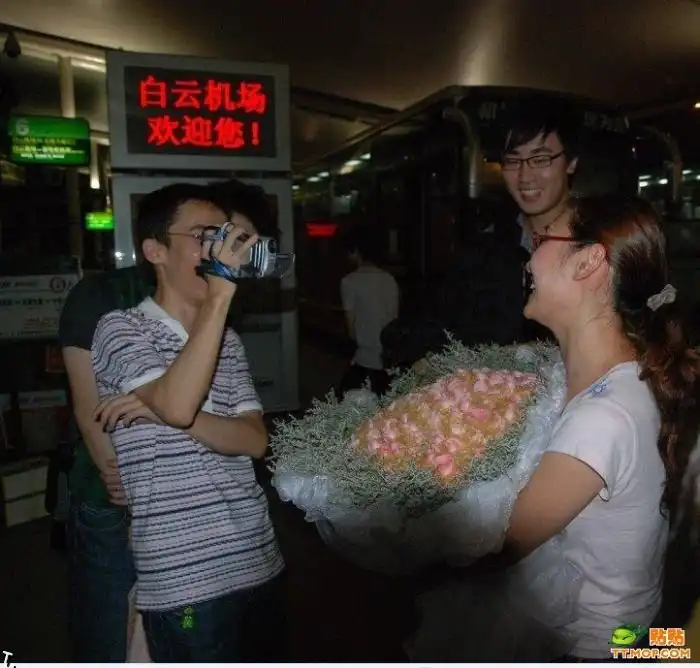 Купил красивый букет, дорогое кольцо, пригласил друзей с плакатами "Выходи за меня замуж" и пошел встречать девушку в аэропорт.