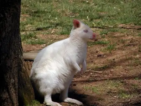 1) акромеланизма (кожа и волосы туловища белые, глаза лишены пигмента и поэтому красные, но уши, мордочка, лапки, хвост пигментированы);