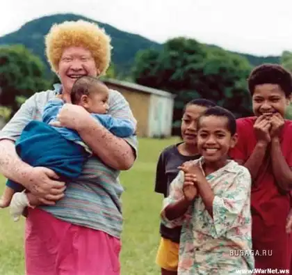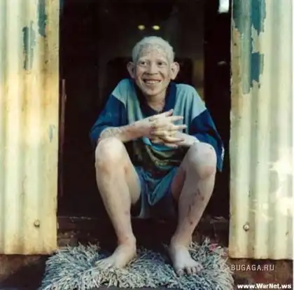 Полный альбинизм известен среди всех рас и народов. Несколько чаще альбинизм встречается среди североамериканских негров, индейцев народности Цуни (штат Аризона), индейцев Мексики, обитателей Сицилии. Частоту полного альбинизма человека различные авторы определяют от 1:10000 (Шотландия) до 1:200000 (Норвегия). При полном альбинизме у человека волосы и кожа белые вследствие отсутствия пигмента меланина; желтоватая окраска кожи зависит от желтоватого цвета рогового слоя эпидермиса. Глаза имеют красновато- розоватый цвет вследствие просвечивания крови, циркулирующей в сосудах глазных оболочек через прозрачные безпигментные среды глаза. Альбиносы из-за недостаточной пигментной ширмы плохо видят; глаза их исключительно чувствительны к свету, днем веки обычно полузакрыты, прищурены, кожа вокруг глаз собрана в морщины; лишь в сумерки они видят несколько лучше. Наблюдается также нистагм и недоразвитие fovea centralis. Важно также отсутствие в головном и спинном мозгу пигмента, который в норме имеется в некоторых участках. Нарушение общей стойкости организма при альбинизме, описанные некоторыми авторами дали основание говорить об особом habitus albinoticus. В отдельных случаях может наблюдаться глухонемота, нистагм, гипотрихоз, пороки развития.