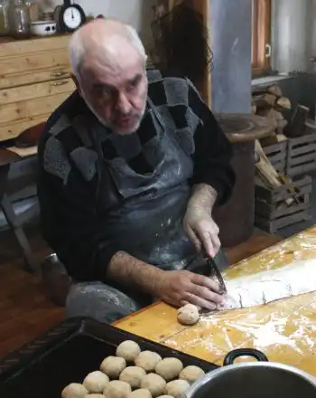 Анатолий в своей пекарне. Подготовка к Евангельским чтениям