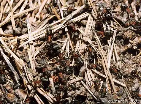 рыжего лесного муравья. Чаще всего он попадает в муравейник с воздуха и
