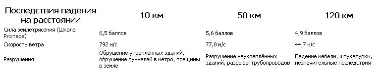 * Энергия столкновения с Землёй — 1717 мегатонн