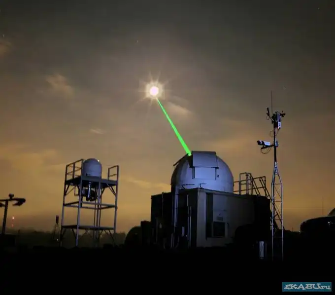 Лаборатория лазерной локации в космическом центре Годдарда в штате Мэриленд выстреливает луч к лунному орбитальному зонду НАСА на этом снимке, опубликованном 24 сентября. Система определения расстояния с помощью лазера позволяет наземным центрам управления определить точное месторасположение орбитального зонда.