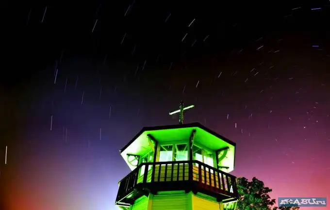 На этом фото, сделанном 7 сентября, звезды кружатся над маяком недалеко от Уоткинсвилля, штат Джорджия.