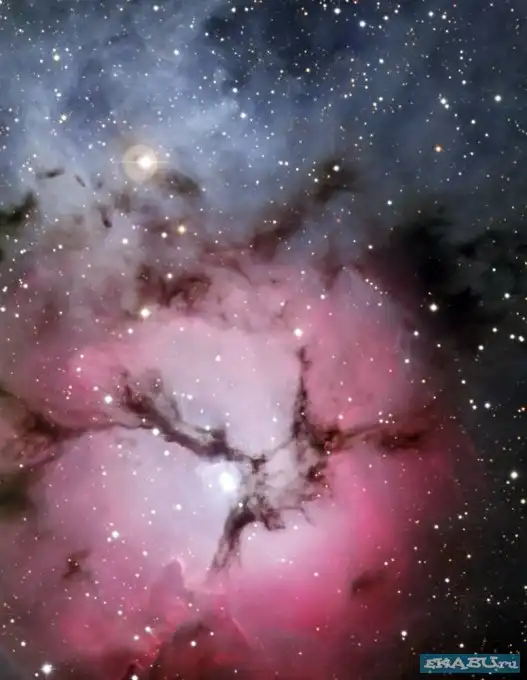 Обширное скопление звезд, известное как Трехраздельная туманность, сияет во всем своем великолепии на этом снимке, сделанном Европейской Южной обсерватории в северном Чили и опубликованном 26 августа. Названная так за темные полоски пыли, разделяющие мерцающее «сердце» туманности на три части, она представляет собой редкое сочетание трех типов туманностей.