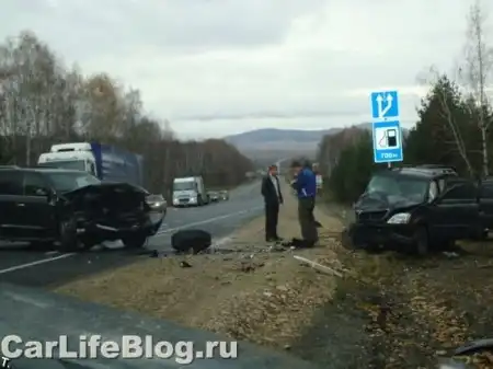Лобовое столкновение двух автомобилей Lexus