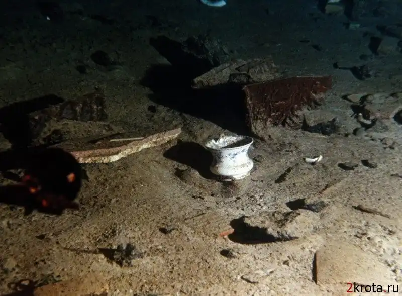 7) Керамическая чашка и обломки с "Титаника" лежат на дне Атлантического океана у побережья Ньюфаундленда.