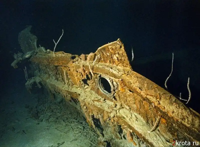 3) Свет батискафа Мир 2 освещает левый становой якорь на баке затонувшего Титаника.