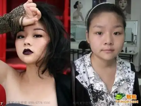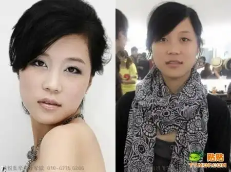 Азиатские девушки до и после макияжа