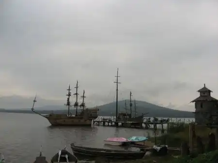 Очень хорошо создана сказочная атмосфера, и посещение Китовой пристани переносит вас в другой мир, где так же можно встретить средневековые замки с пушками необычного вида и постоять у штурвала бригантины.